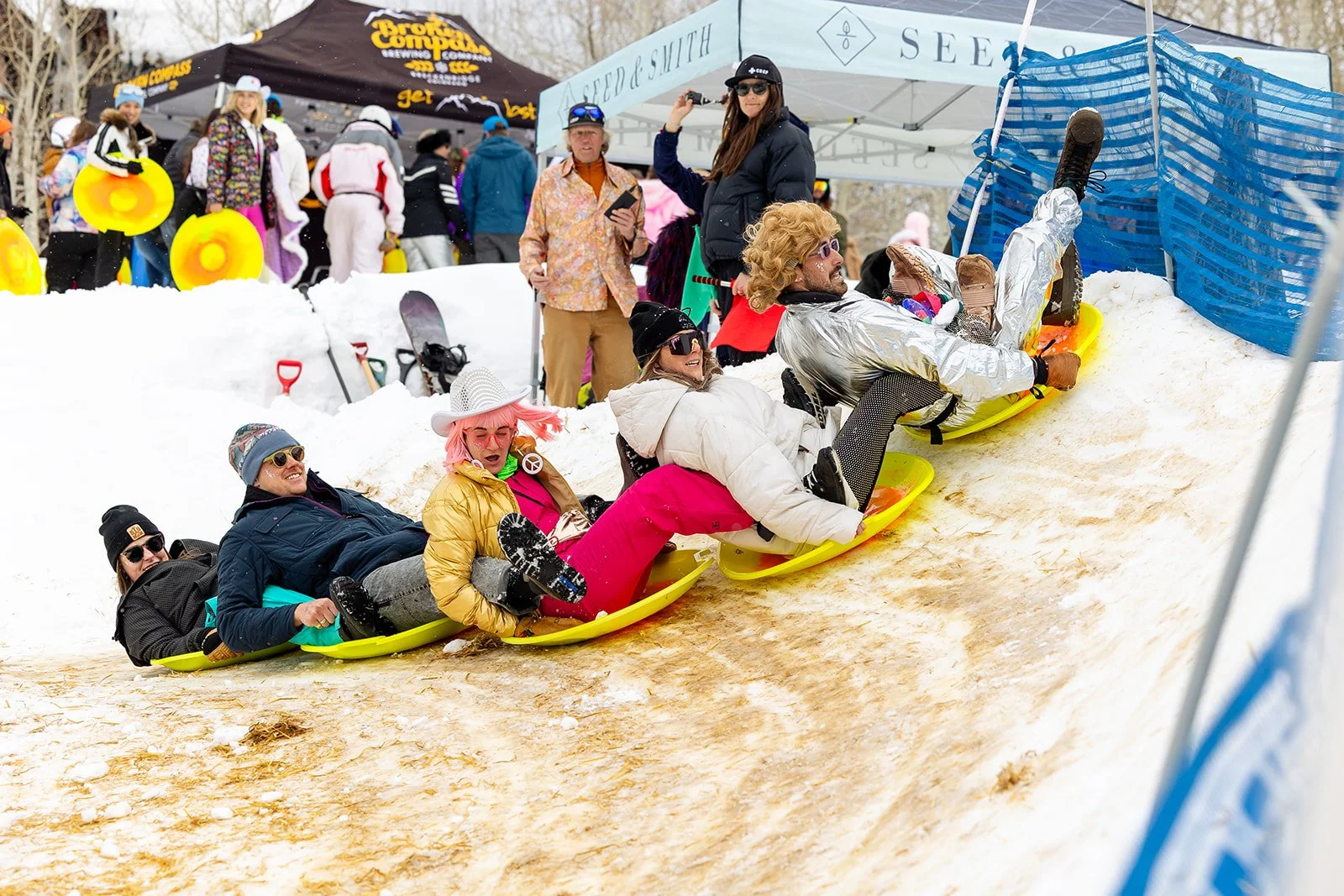 Sleds is an all-inclusive fundraiser, make a donation, and we’ve got you covered! Enjoy local beers, craft cocktails, delicious food, and a wide range of non-alcoholic drinks, all included. The day is packed with entertainment: eight DJs, a big air ski/snowboard comp, fire dancing, giveaways, and bubbles everywhere. Stroll the strip with coffee, pastries, juice shots, and wellness vibes, get creative at the face painting booth, or check out local vendors with the freshest merch. This is more than a fundraiser, it’s an experience in the Last Great Sled Town! We have one question….Are you in?!